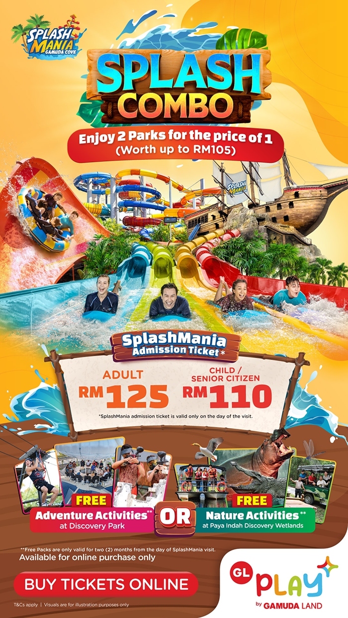 Purchase a ticket to SplashMania Waterpark and get FREE ACCESS (worth up to RM105!) to either: