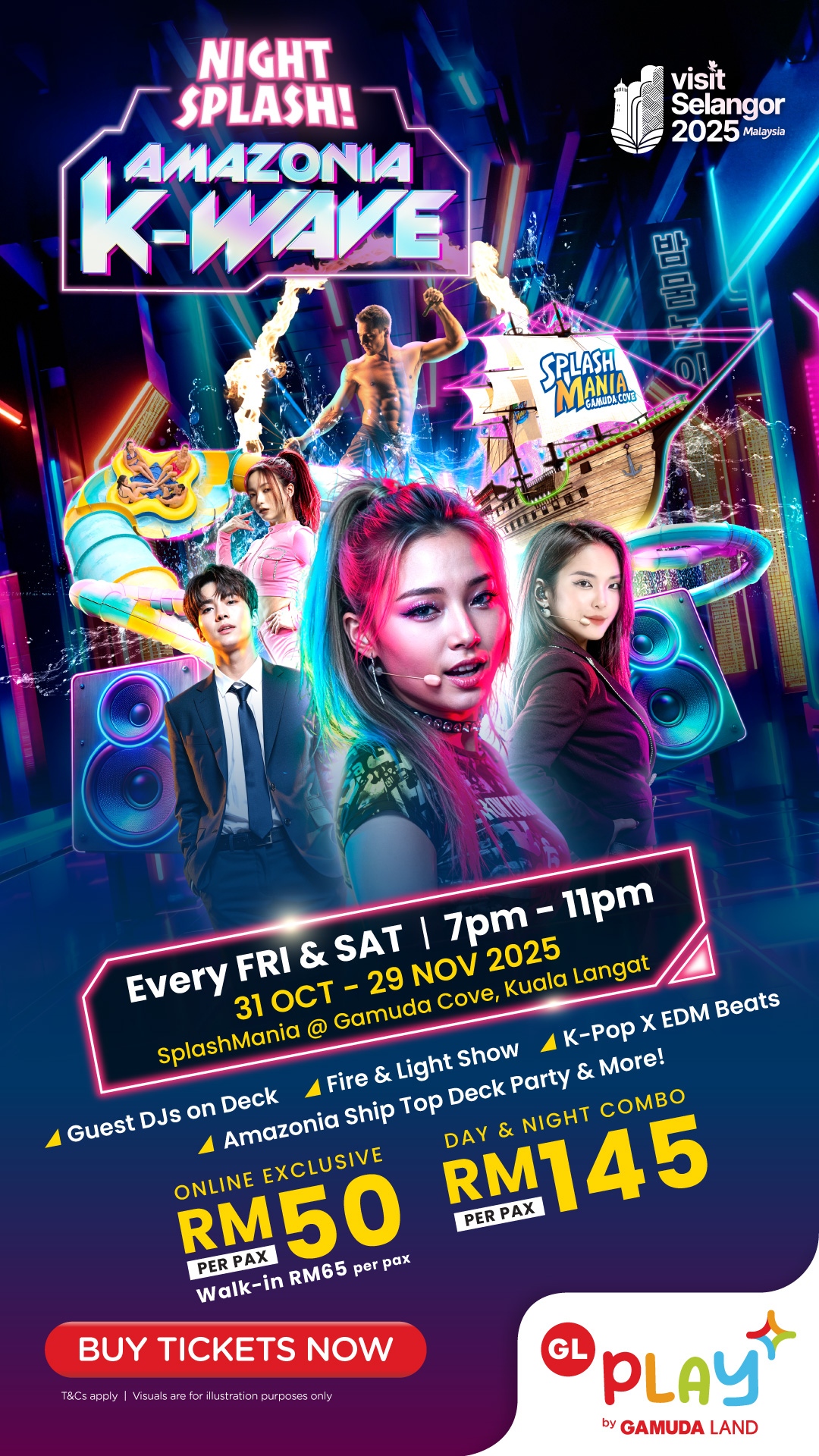 Step aboard and ride the K-Wave with rooftop DJ drops, glow-lit dance zones, and non-stop performances - all inside SplashMania after dark.