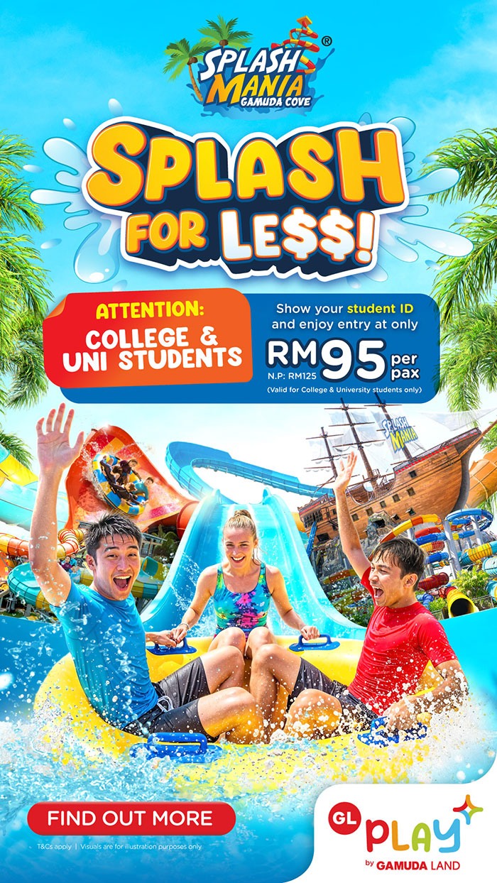 *Valid for tickets purchased via walk-in at SplashMania's ticketing counters only.