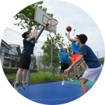 Gather your team and show off your basketball skills at our 2 basketball courts around Quayside
